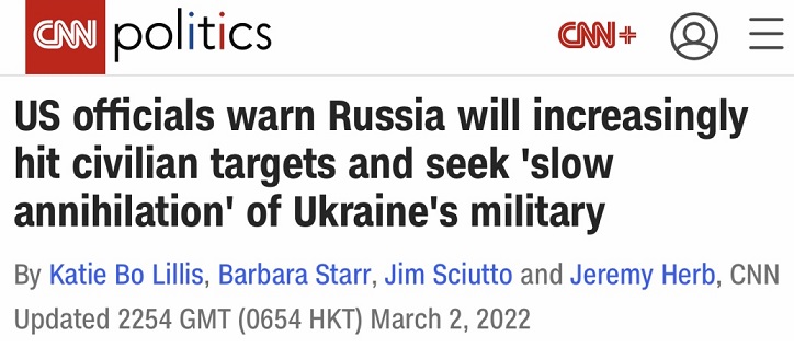 CNN报道称,到目前为止,乌克兰军队一直能够击退俄罗斯最初的进攻,保持对基辅和其他主要城市的控制。但他们在武器和人员上都处于劣势。美国官员们说,在最初把重点放在军事目标上之后,俄罗斯现在正在引进更重、更具破坏性的武器,并越来越多地打击民用基础设施。