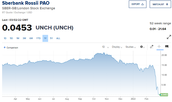 FX168财经报社(北美)讯 伦敦证券交易所暂停了27家与俄罗斯有关的公司的交易,其中包括其最大的银行俄罗斯联邦储蓄银行(Sberbank)和能源巨头俄罗斯天然气工业股份公司(Gazprom)。