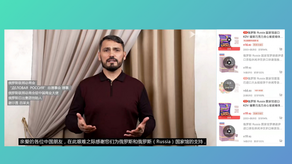 对于中国网友的这番热情,3月2日,店铺首页出现了一则感谢视频,俄罗斯联邦总商会、"ДЕЛОВАЯ РОССИЯ"总理事会理事、俄罗斯联邦总商会驻中国商业大使、俄罗斯日出集团创始人谢尔盖·百采夫出镜,亲自向中国朋友表示感谢。