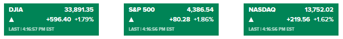 道琼斯指数收盘下跌96.69点或0.29%,收于33794.66点,盘中大部分时间都在上涨。标准普尔500指数下跌0.53%,至4363.49点。纳斯达克综合指数下跌1.56%,收于13537.94点。