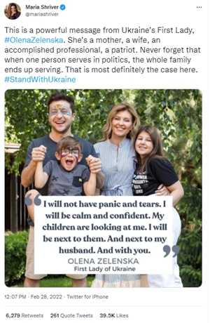 奥莱娜还在Instagram上贴出了立陶宛和拉脱维亚第一夫人声援乌克兰的影片,并写到“这些天来,其他国家的第一夫人问我,如何能帮助乌克兰。我的答案是把真相告诉全世界!大声说出来!乌克兰发生的,不是普京所说的‘特殊军事行动’,而是一场全面战争。说出来!乌克兰儿童必须在防空洞生活和学习,医院必须在地下室治疗病人。让全世界都知道,这不是‘某处’的战争,而是一场在欧洲和欧盟边境的战争。乌克兰正在对抗防御的力量,明天就可能入侵你们的和平城镇。”