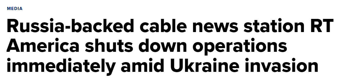 基于俄军入侵乌克兰之举,美国最大的卫星电视营运商DirecTV本周稍早开始停播RT America,影音串流设备大厂Roku随即跟进,在自家Roku频道商店中移除该新闻台。