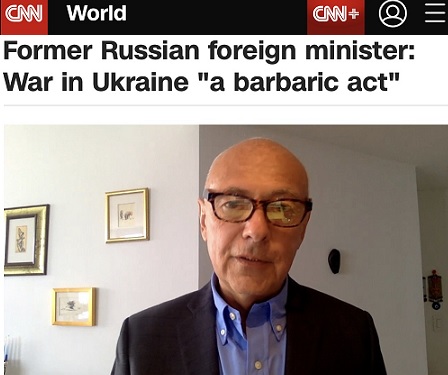 FX168财经报社(香港)讯 俄罗斯上周入侵乌克兰后引发国际制裁,国内也出现抗议声音。俄罗斯首任外交部长科济列夫(Andrei Kozyrev)继周二(3月1日)呼吁俄罗斯外交官辞职以示抗议之后,他在周四接受采访时称乌克兰战争是“野蛮的”。