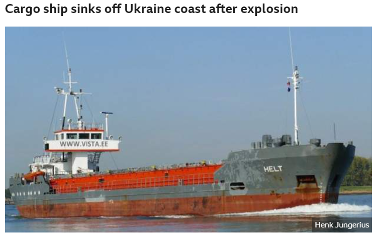 英国BBC新闻刚刚传来消息,爱沙尼亚船东说,这艘货船在爆炸后在乌克兰海岸沉没。他们说,2名船员最终被困在海上救生筏上,另外4人最初失踪,所有6人后来都被当地的乌克兰救援服务机构救起。