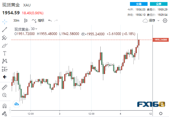 24K99讯 周五(3月4日),在美国2月非农就业数据意外上扬后,黄金短线波动加剧,但目前仍交投在1950美元上方。