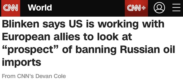 CNN表示,自俄罗斯上月24日入侵乌克兰以来,美国已对俄罗斯及总统普京(Vladimir Putin)实施一系列制裁,但俄罗斯是世界第二大石油生产国,假如真的采取禁止进口俄罗斯石油这一史无前例的制裁措施,国际油价势必会飙升,给各地消费者带来沉重打击。