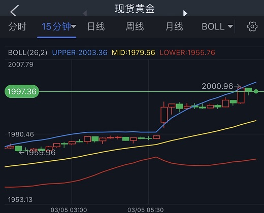 现货黄金也突破2000美元/盎司整数大关,续刷2020年8月以来新高。目前现货金最高触及2000.96美元/盎司。
