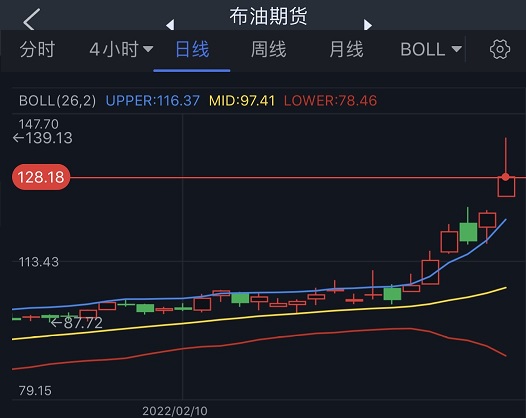 此前,布伦特原油价格一度飙升至139.13美元/桶,为2008年7月以来的最高水平。