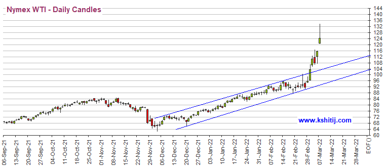 原油方面,Kshitij咨询服务团队表示,布伦特原油期货大涨,并一度几乎测试140美元/桶,然后有所回落;WTI原油期货也在测试130.50美元/桶后回落。112美元/桶和105美元/桶是布油和WTI原油下行的重要支撑,而上行的不确定性依然存在,因此很难预测任何目标。