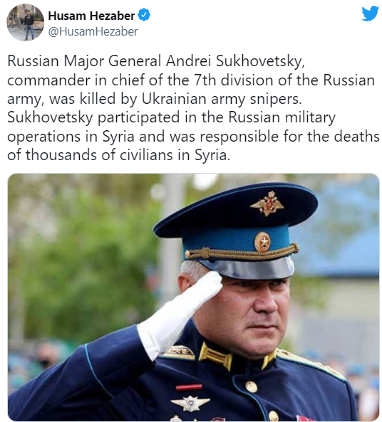其他多份报道还称,据说也是特种部队指挥官和叙利亚老兵的苏霍维茨基被一名乌克兰狙击手击毙。