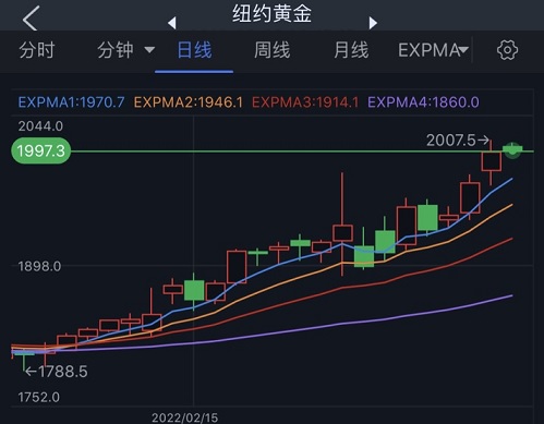 24K99讯 黄金期货周一(3月7日)收盘飙升并创下2020年8月以来的最高收盘价。俄乌战事再度升级,令避险情绪高涨,推动周一黄金期货价格一度突破2000美元/盎司关口。