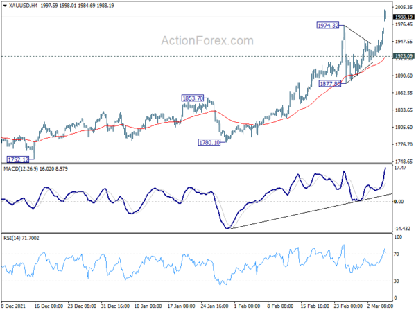 24K99讯 周二(3月8日)亚市盘中,现货黄金位于1990美元/盎司附近。知名机构ActionForex.Com撰文,对金价技术前景进行分析。该机构指出,金价在触及2000美元/盎司后,目前首个目标瞄准2074美元/盎司。