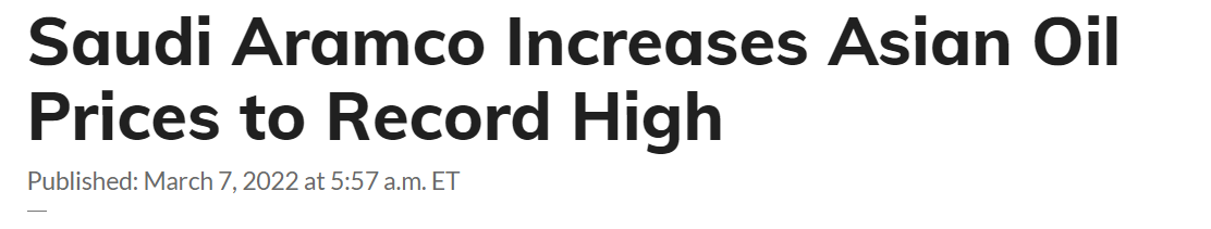 FX168财经报社(香港)讯 在乌克兰战争和俄罗斯石油供应中断的情况下,全球最大的石油生产商沙特阿美(Saudi Aramco)宣布,全面调涨4月份的原油售价,而且已经向美国、欧洲与亚洲客户发出通知。