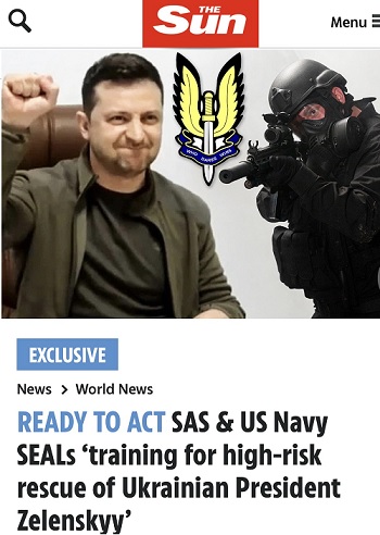根据《太阳报》报道,消息人士指出,英国约有70名英国陆军特种空勤团(SAS),据传已加入总数达150名的美国海军三栖特战部队海豹突击队(SEAL)行列。他们目前共同位于立陶宛某个偏远基地,一起接受特训以及策划拯救泽连斯基的夜间任务。