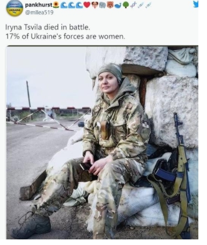 全乌克兰联盟自由主席称,“我们的姐妹,自由斗士茨维拉在保卫基辅的战斗中阵亡,她是永远的乌克兰的英雄。让我们赢得这场战争,为她报仇。”