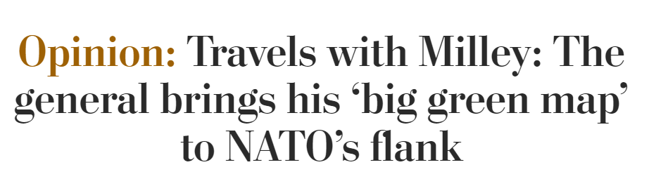 米利将军随身携带所谓“绿色大地图”(Big Green Map),而且是无论他去哪里。在五角大楼内,在白宫与拜登总统会面时,以及在北约前线的五日游等国外旅行中,他都坚持携带该地图。