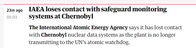 国际原子能机构总干事拉斐尔·马里亚诺·格罗西(Rafael Mariano Grossi)在声明中表示,安装在切尔诺贝利核电站的保障监督系统,其远程数据传输已经丢失。该机构目前正在“调查乌克兰其他地点的保障监督系统的状况”