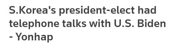 FX168财经报社(香港)讯 据韩联社最新消息,韩国第20届总统当选人尹锡悦“确定当选”后,仅经过5个多小时,便在美方邀请促成下,成功在10日上午9时40分与美国总统拜登通电话。日本方面也送来祝贺,并表示期盼未来能改善两国关系。