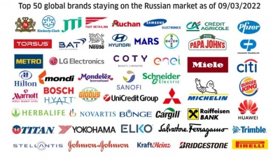 随着乌克兰冲突的加剧,越来越多品牌退出俄罗斯的市场,在过去的几天里,星巴克、麦当劳、肯德基等零售巨头都加入。而乌克兰外交部则是在周三(3月9日)公布了一份未制裁俄罗斯、继续留在当地经营的公司名单,其中包括50多家国际品牌,例如三星、现代、辉瑞、雀巢、花旗银行、汉堡王等等。