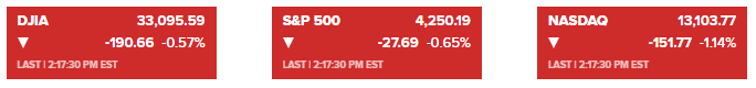 道琼斯指数在前一交易日上涨超过650点后下跌200点。标普500指数下跌0.6%。以科技为主的纳斯达克综合指数下跌1%,受苹果和Meta平台下跌所拖累。