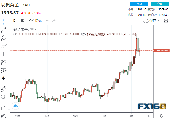 2.DailyFX分析师Warren Venketas在一份报告中称,“尽管市场已被大宗商品供应冲击同化,但黄金的避险吸引力依然存在,且随着乌克兰战争持续,其将成为推动金价上涨的动力。”
