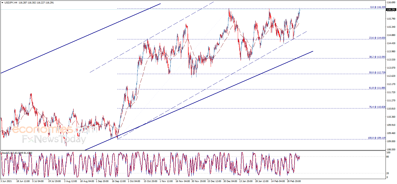 因此,除非美元/日元跌破115.50并维持在该位下方,否则我们将继续预测该货币对处于看涨趋势。从4小时图来看,EMA 50指标构成良好支撑。