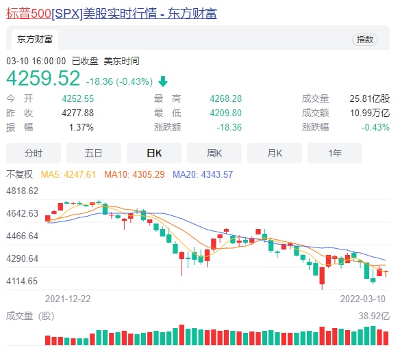 (标普500指数走势图 来源:东方财富)
