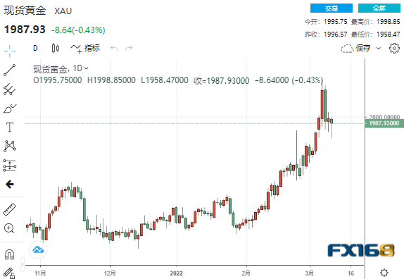 对美联储下周加息的预期也限制了金价。芝加哥商品交易所的联邦观察工具的数据显示,在2月份通胀不断加剧的情况下,94%的人押注央行将在3月16日将基准隔夜利率上调至少25个基点。
