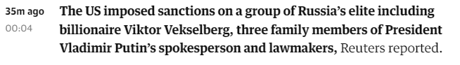 普京的发言人德米特里·佩斯科夫(Dmitry Peskov)于3月3日成为目标,周五的措施扩大到他的妻子和两个成年子女。财政部在一份新闻稿中说,他们过着“与佩斯科夫公务员薪水不相符的奢侈生活方式”。