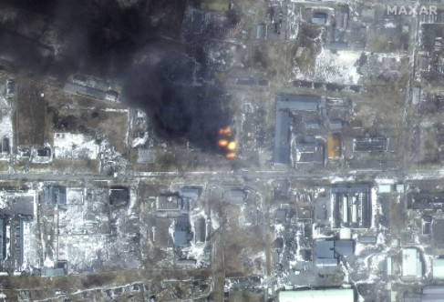 Maxar公司称,马里乌波尔的西部地区有大火,数十栋高层公寓楼在俄罗斯的轰炸和炮击中严重受损。