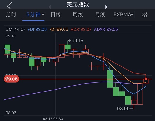 受俄乌谈判正面消息刺激,市场避险情绪降温。美元指数一度跌破99关口。