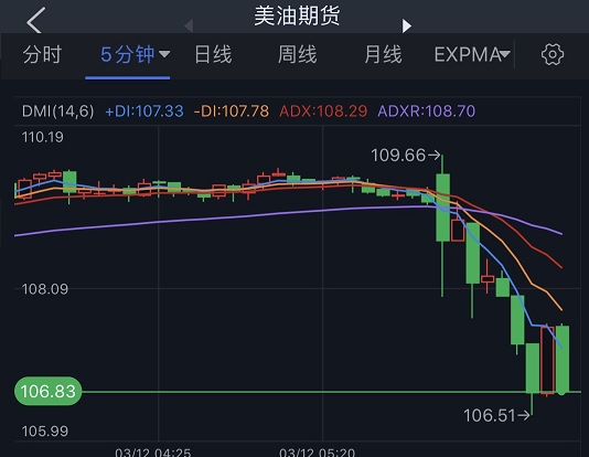美国原油和布伦特原油扩大跌幅。WTI原油回落至107美元/桶下方,日内跌逾2%,最低触及106.51美元/桶。布伦特原油跌幅扩大至1.1%,报110.98美元/桶。