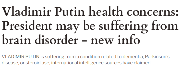 他们认为,普京可能罹患帕金森氏症或失智症,导致脑部功能失调,而这可能服用类固醇治疗癌症,从而引起“类固醇狂怒”等副作用。