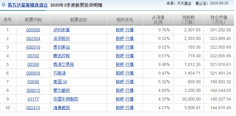经抽查易方达蓝筹精选混合的历史持仓情况,发现十大持仓集中度长期在80%以上,而且很少调仓换股。