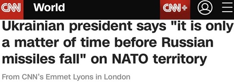 泽连斯基补充道:“现在我再重复一遍,如果你们不关闭我们的天空,俄罗斯火箭落在你们(北约)的领土上只是时间问题。”