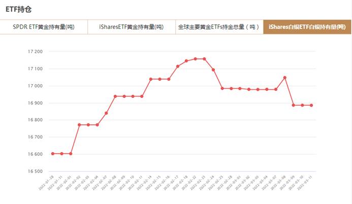 iShares白银ETF3月11日白银持有量为16886.01吨,与上一交易日持平。