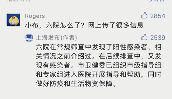 3月13日,有网友在上海发布公众号留言询问上海市第六人民医院的具体情况。对此,上海发布微信公众号留言回应: