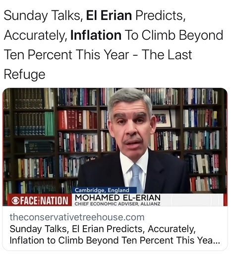 埃里安声称,美国通胀会到达这个地步,是因为美联储的行动来得太晚,而且已经没有更好的政策选择了。