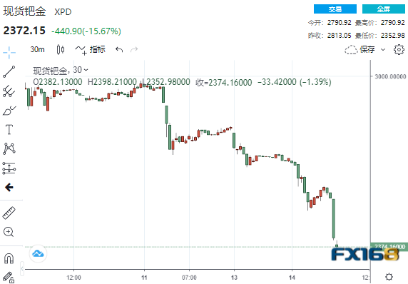 (现货钯金30分钟走势图,来源:24K99)