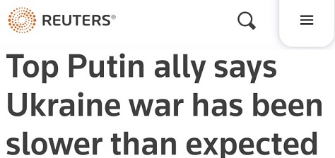 FX168财经报社(香港)讯 俄罗斯总统普京(Vladimir Putin)最亲密的盟友之一表示,俄罗斯在乌克兰的军事行动并没有像克里姆林宫希望的那样迅速结束。这是莫斯科方面迄今为止最强烈公开承认入侵行动并没有按计划进行。