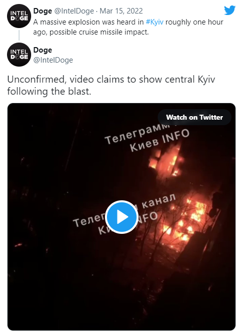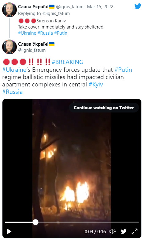 以色列时报(The Times Of Israel)提到,黎明前的大规模爆炸震撼了基辅,公寓起火视频显示基辅的公寓在大爆炸后完全被吞没。